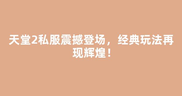 天堂2私服震撼登场,经典玩法再现辉煌!