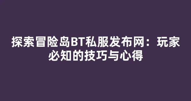 探索冒险岛BT私服发布网:玩家必知的技巧与心得