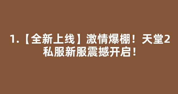 【全新上线】激情爆棚!天堂2私服新服震撼开启!