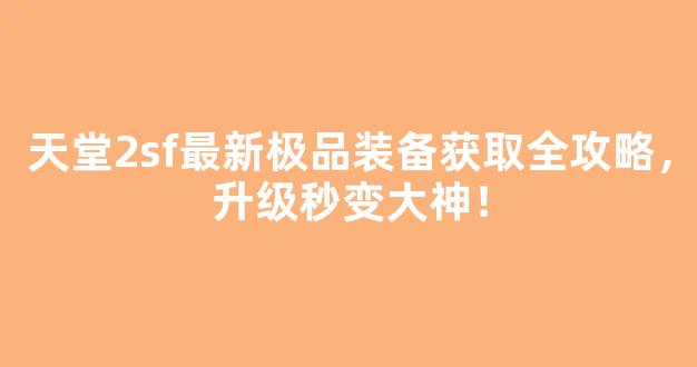天堂2sf最新极品装备获取全攻略,升级秒变大神!