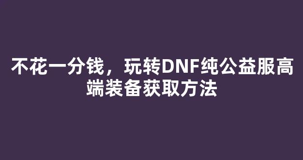 不花一分钱,玩转DNF纯公益服高端装备获取方法