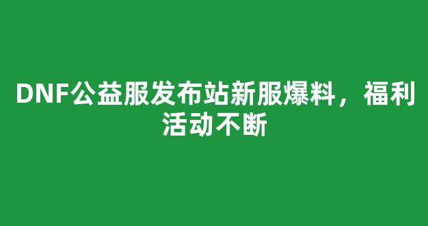 DNF公益服发布站新服爆料,福利活动不断